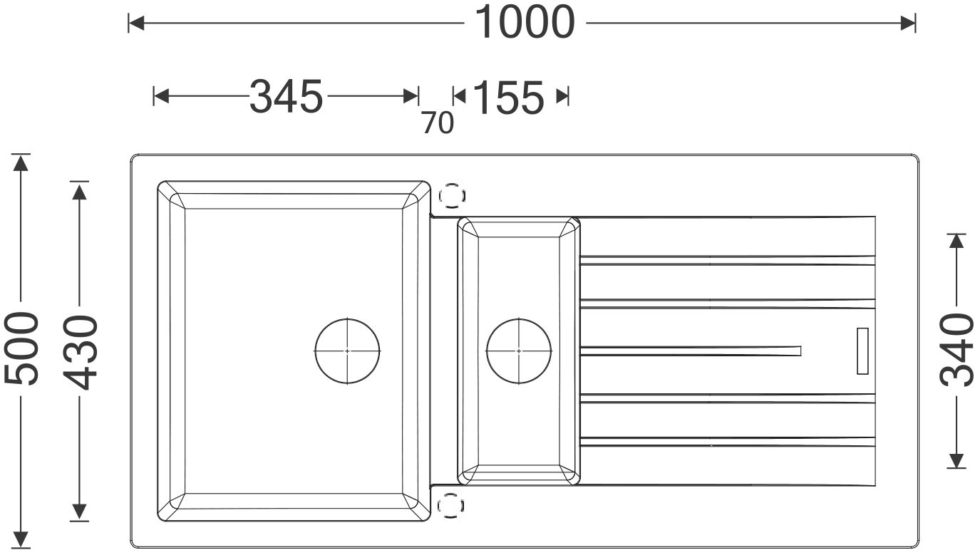 - rozměry vany: 345 x 430 mm a 155 x 340mm, hloubka vany 200 a 146 mm