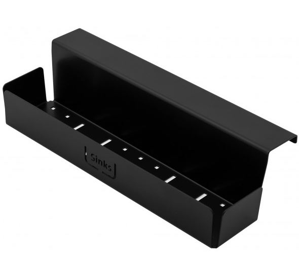 Praktická polička v černém provedení je ideálním doplňkem k vašemu dřezu.