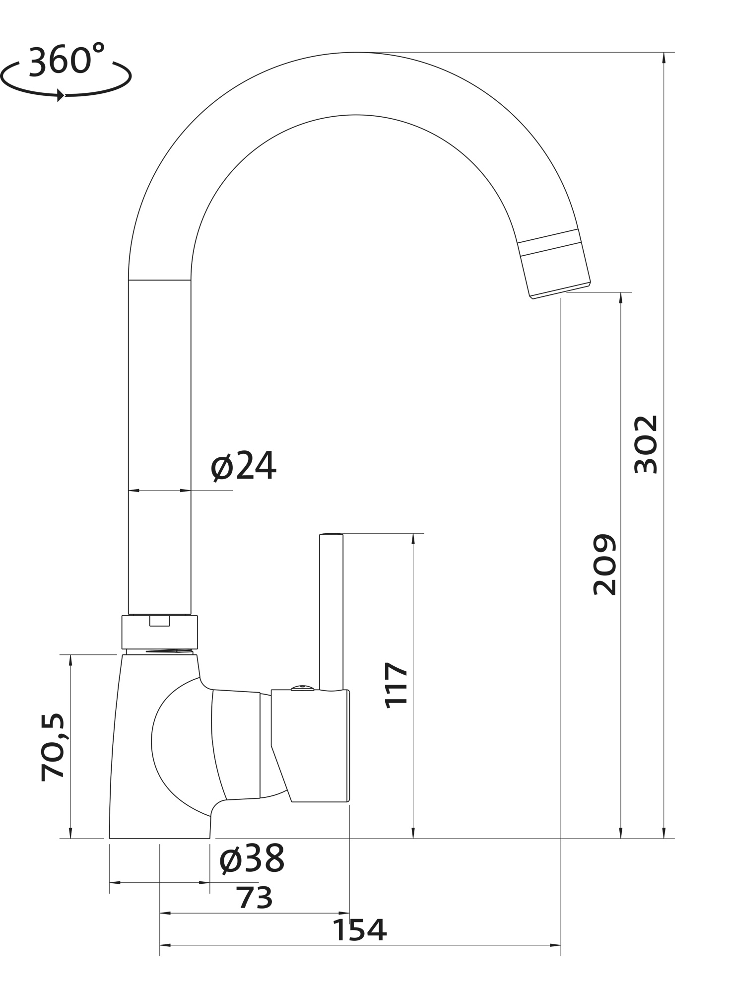 Ovládání baterie: Páková, otočná 360°