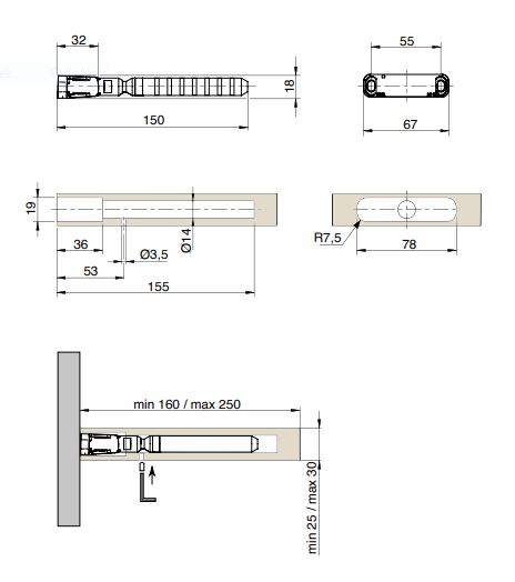Určeno pro police o minimální tloušťce 25 mm, 25 - 30 mm a 40 mm.