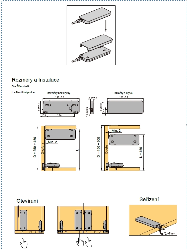 - díky výšce 14 mm lze schovat tlumič do nábytkové desky (s minimální tloušťkou 16 mm) vyfrézováním vhodného množství prostoru, pak už jen přilepit