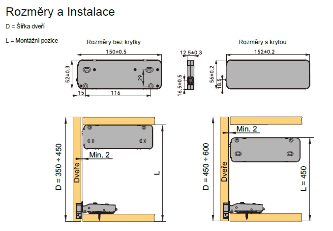 - díky výšce 14 mm lze schovat tlumič do nábytkové desky (s minimální tloušťkou 16 mm) vyfrézováním vhodného množství prostoru, pak už jen přilepit