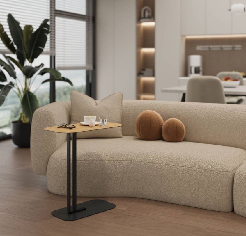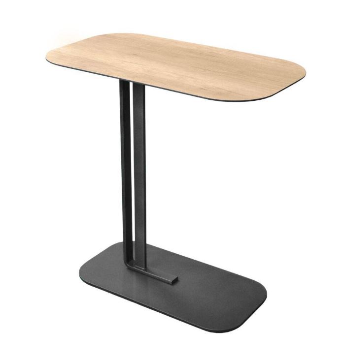 Stolek lze využít také jako mobilní odkládací plochu - perfektní například pro občerstvení, knihu nebo dekoraci. Kovová konstrukce v kombinaci s deskou v přírodním dekoru působí