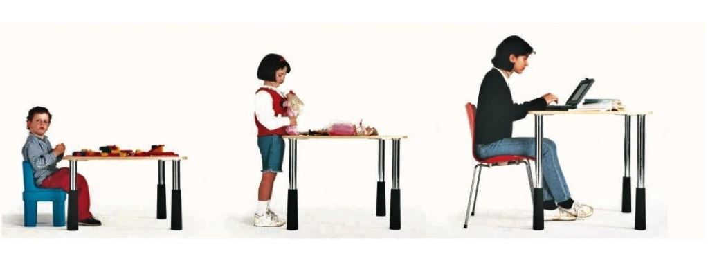 Výškově stavitelná noha ke stolu od italského výrobce Camar, ideální pro dětské pokoje, školky i školní třídy.