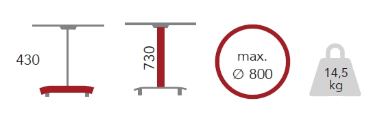 - Maximální rozměr stolové desky průměr 800 x 18 mm