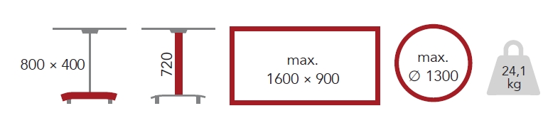 - Maximální rozměry hranaté stolové desky: 1600 x 900 x 18 mm