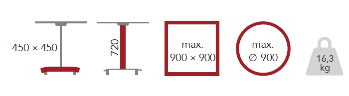 - Maximální rozměry hranaté stolové desky: 900 x 900 x 18 mm