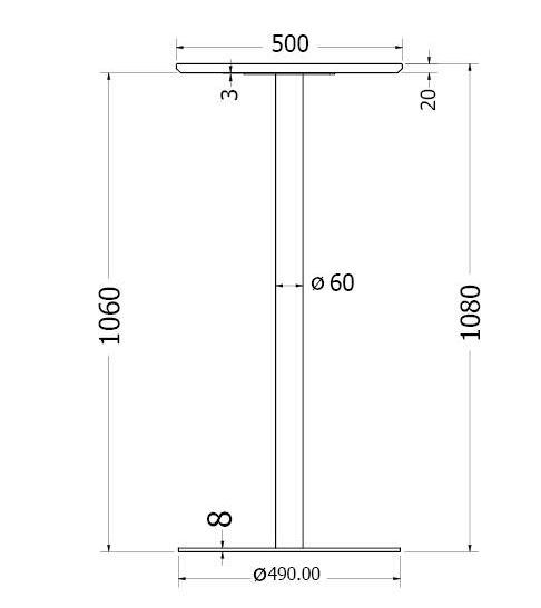 - Minimální rozměry stolové desky: průměr 450 x 20 mm