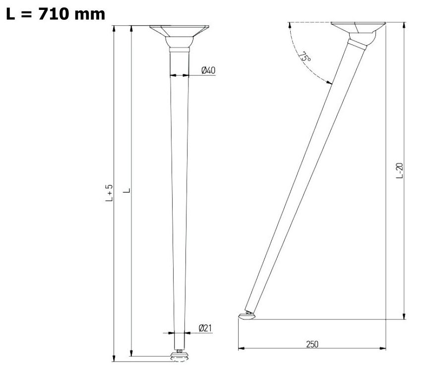 - Stolová noha výkyvná 710 mm chrom lesklý