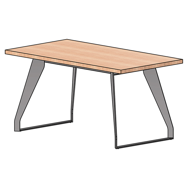 Její zkosené provedení s různou šířkou profilu vytváří skutečně nevšední jídelní stůl a s možností osazení deskou z libovolného materiálu můžete mít stůl přesně dle svého vkusu.