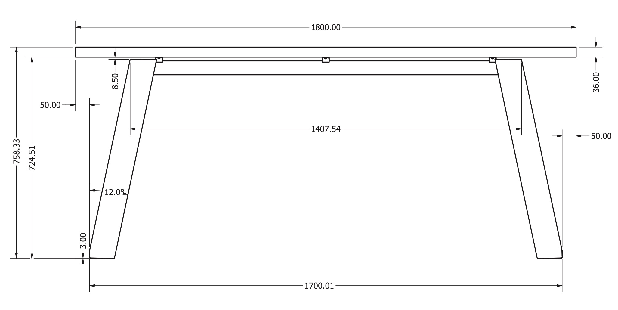 - Optimální rozměr stolové desky 1800 x 900 x 36 mm