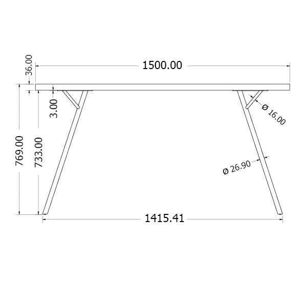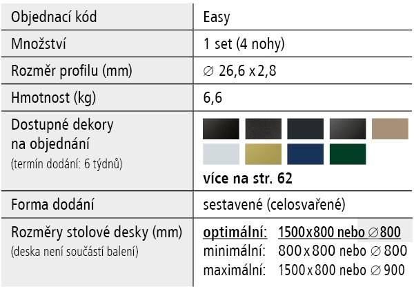 - Optimální rozměr stolové desky 1500 x 800 x 36 mm nebo průměr 800 mm