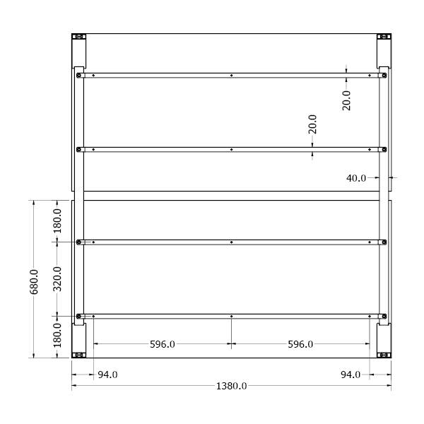 - Rozměr profilu: 60 x 20 x 2 mm; 40 x 20 x 2 mm příčníky