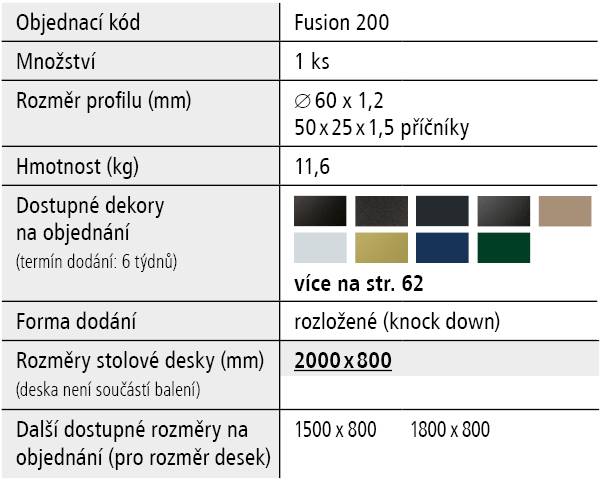 - Optimální rozměr stolové desky 2000 x 800 mm