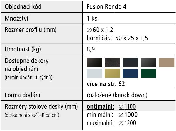 - Optimální rozměr stolové desky průměr 1100 x 36 mm