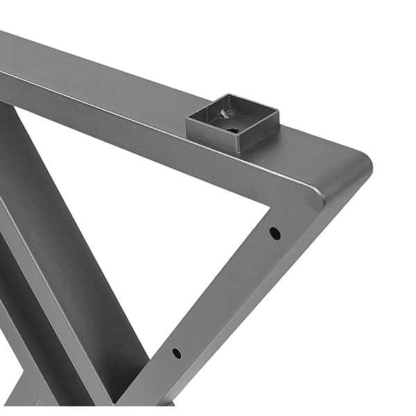 Stolová ocelová podnož TROY zaujme svým masivně působícím designem a vytvoří tak nepřehlédnutelný kancelářský stůl. Kromě vzhledu má podnož vysokou stabilitu a lze osadit deskou o šířce 800 mm. Podnož je připravena pro instalaci spodního krycího panelu (lze dokoupit samostatně).