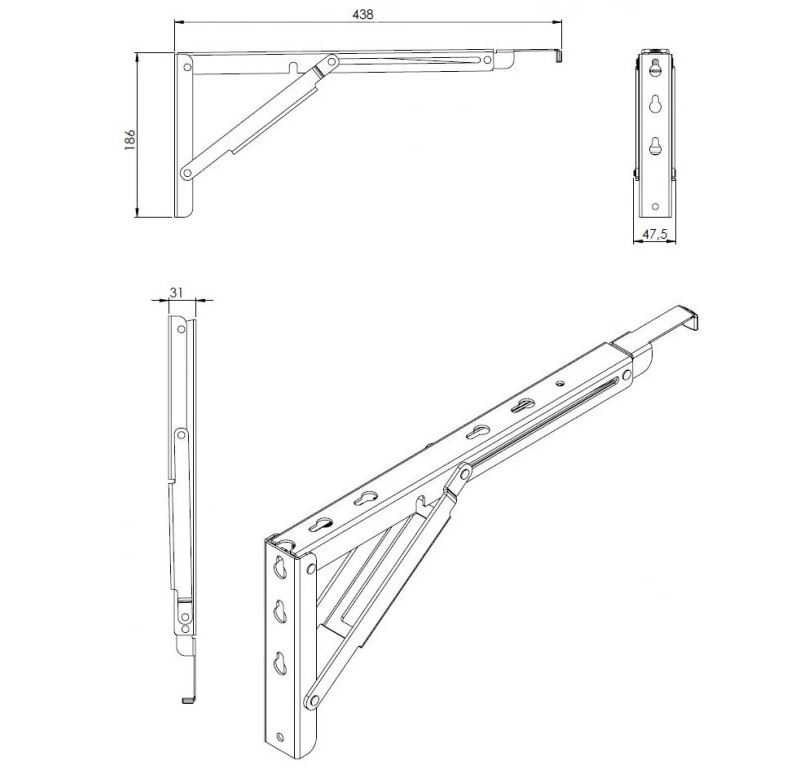 Praktická sklopná podpěra je určena pro výrobu sklopných stolů všude tam, kde není prostor pro stálé umístění stolové desky.