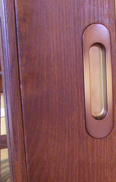 Zápustná kovová nábytková úchytka je ideální volbou pro posuvné dveře.