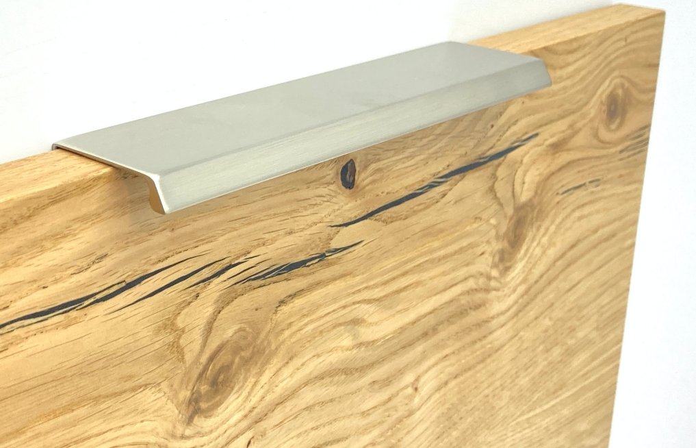 Úchytka má elegantní tvar, který po zavření dvířek působí minimalisticky a moderně. V kombinaci s dřevodekorem dodá