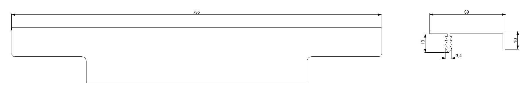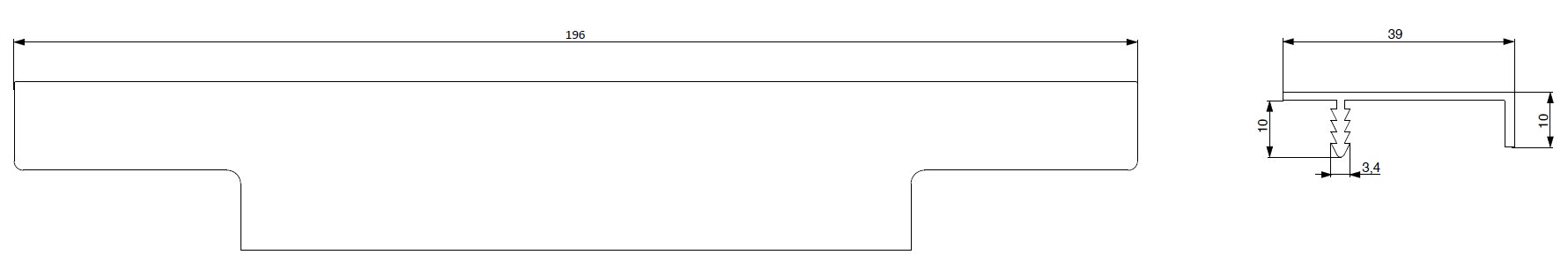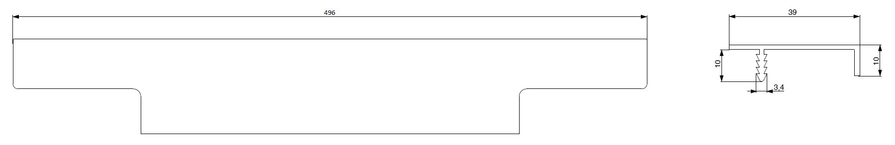 - úchytkový narážecí profil do kuchyňských dvířek s trnem pro zaražení do drážky v hraně dveří