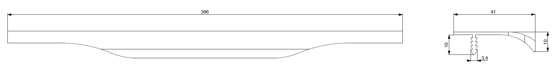 - úchytkový narážecí profil do kuchyňských dvířek s trnem pro zaražení do drážky v hraně dveří
