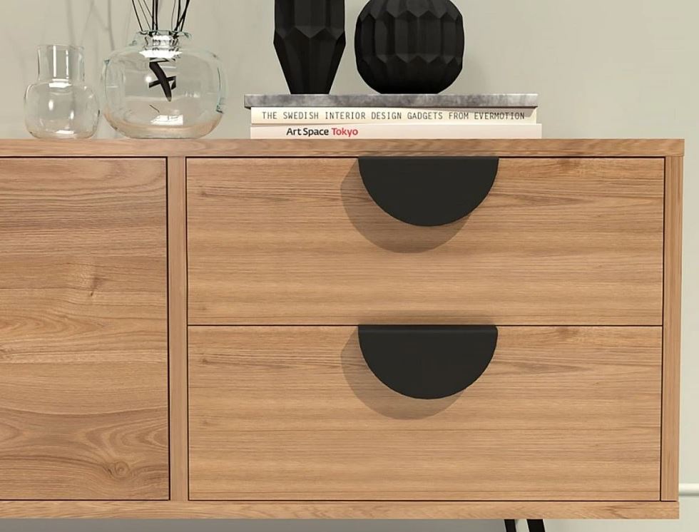 V černé matné barvě úchytka vynikne jak na dvířkách v dekoru dřeva, tak i na univerzálních barvách.