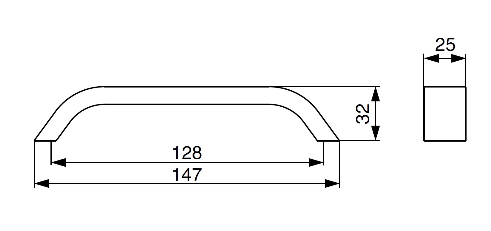 128 mm, 160 mm, 192 mm, 224 mm, 320 mm