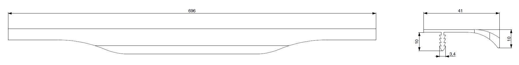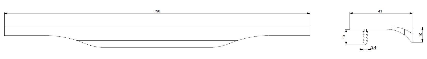 - úchytkový narážecí profil do kuchyňských dvířek s trnem pro zaražení do drážky v hraně dveří