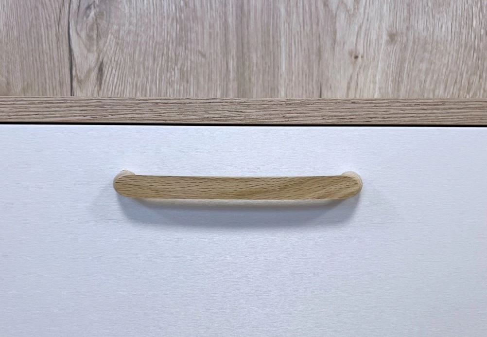 Dubová úchytka Zina dotváří přírodní vzhled nábytku, je příjemná na dotek a hodí se pro různé typy interiérů, vynikne na černých nebo bílých dvířkách.