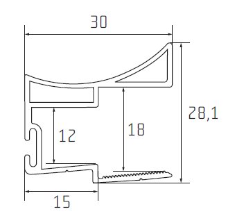- úchytková lišta S14 je hliníkový úchytkový profil pro výrobu dveří z materiálu o síle 18 mm