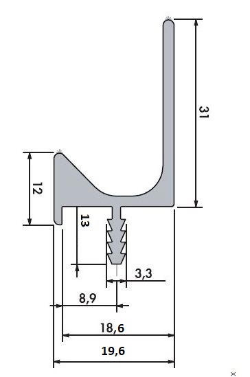 Narážecí úchytkový profil UKS-5 na kuchyňskou linku pro materiál o síle 18 mm.