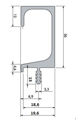 Narážecí úchytkový profil UKS-7 na kuchyňskou linku pro materiál o síle 18 mm.