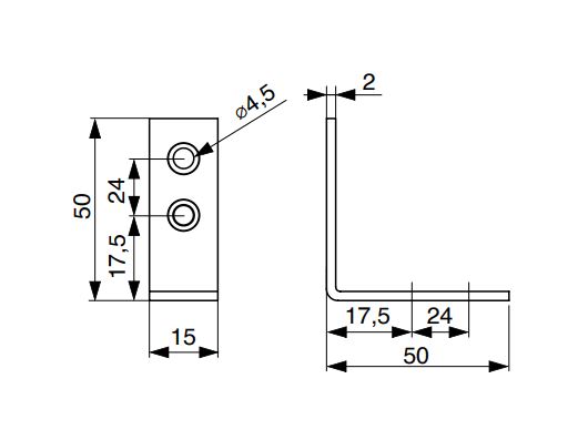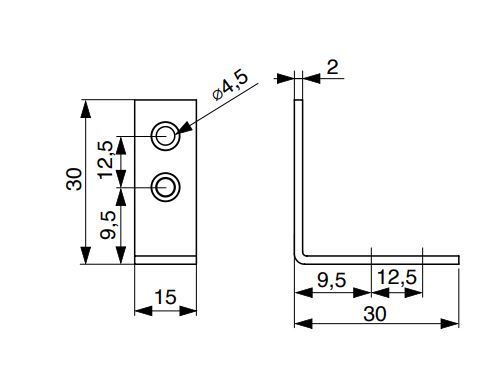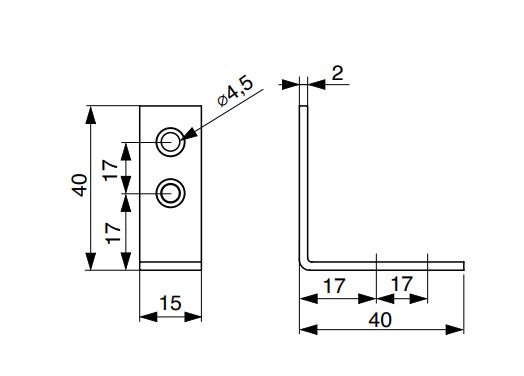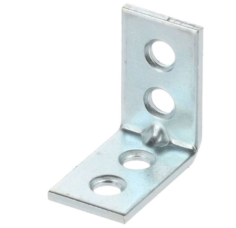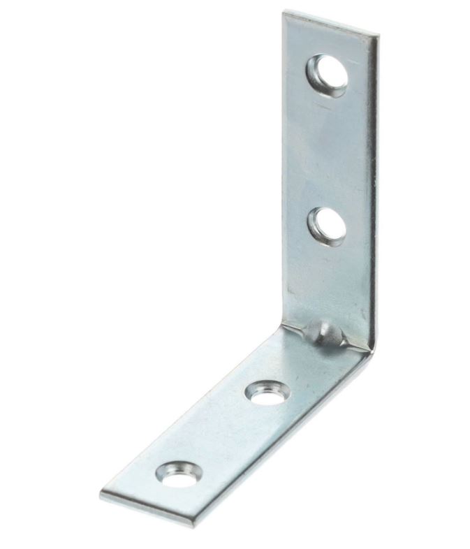 Úhelník z kovu určený pro pevné spojení dvou desek v pravém úhlu.
