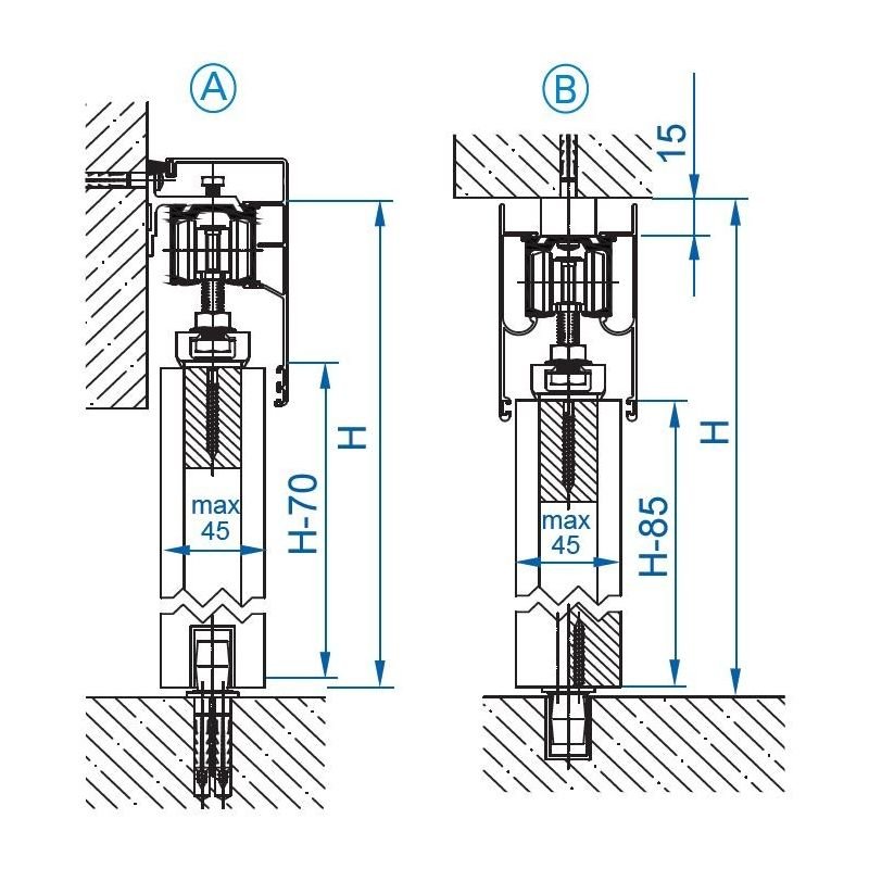 - zde je nutno použít distanční podložky pro odsazení horní kolejnice od stropu /nutno objednat zvlášť/