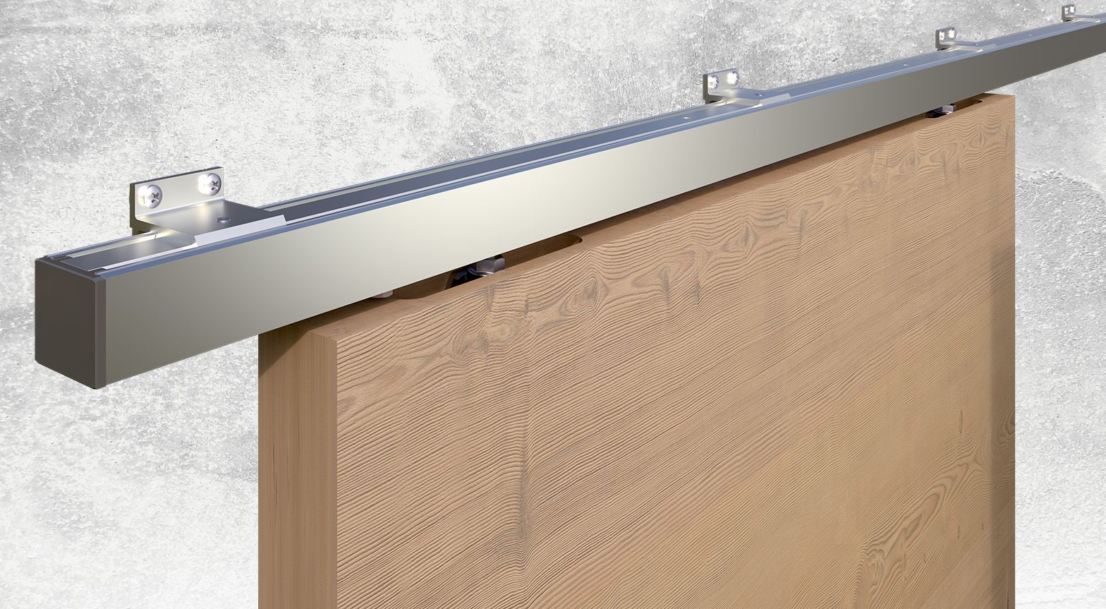 Sada Herkules Neo 20 obsahuje veškeré potřebné komponenty pro dřevěné dveře o maximální váze 100 kg včetně kolejnice o délce 2 m v eloxovaném hliníku. Díky zafrézovaným vozíkům docílíte menší vzdálenosti mezi horní hranou křídla a spodní hranou kolejnice
