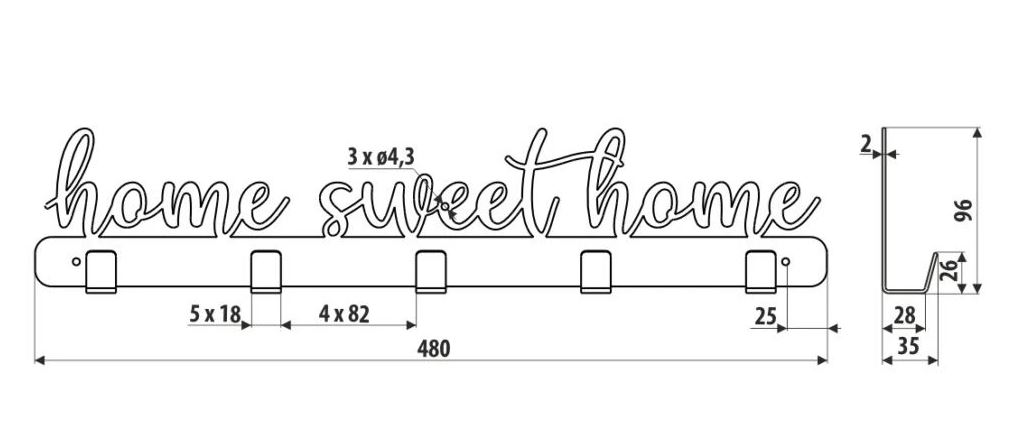 - Věšák Home sweet home černý