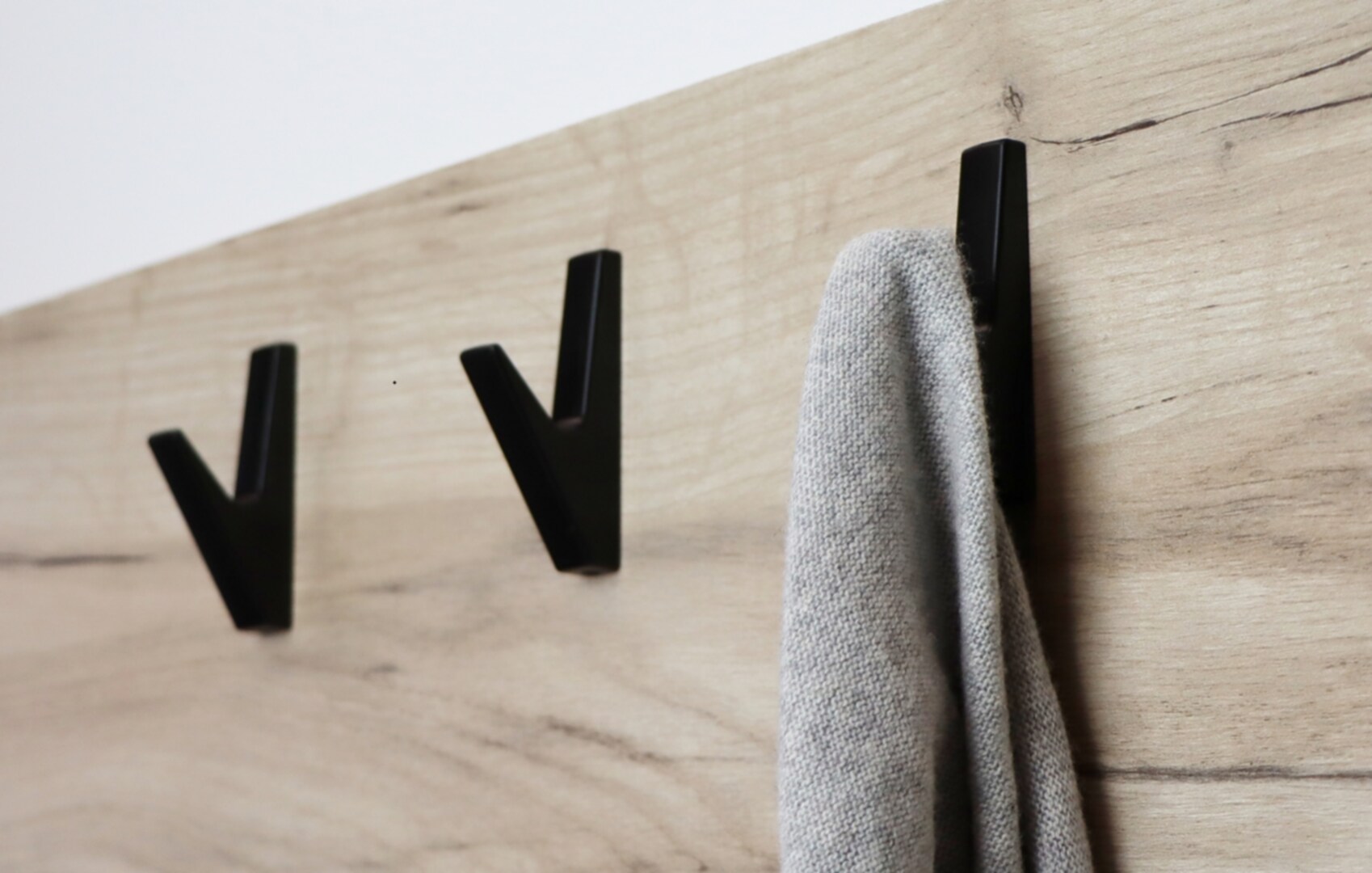 Věšák Jan je vyroben z černého zamaku, který nabízí vysokou odolnost i elegantní vzhled. Díky zpracování snadno