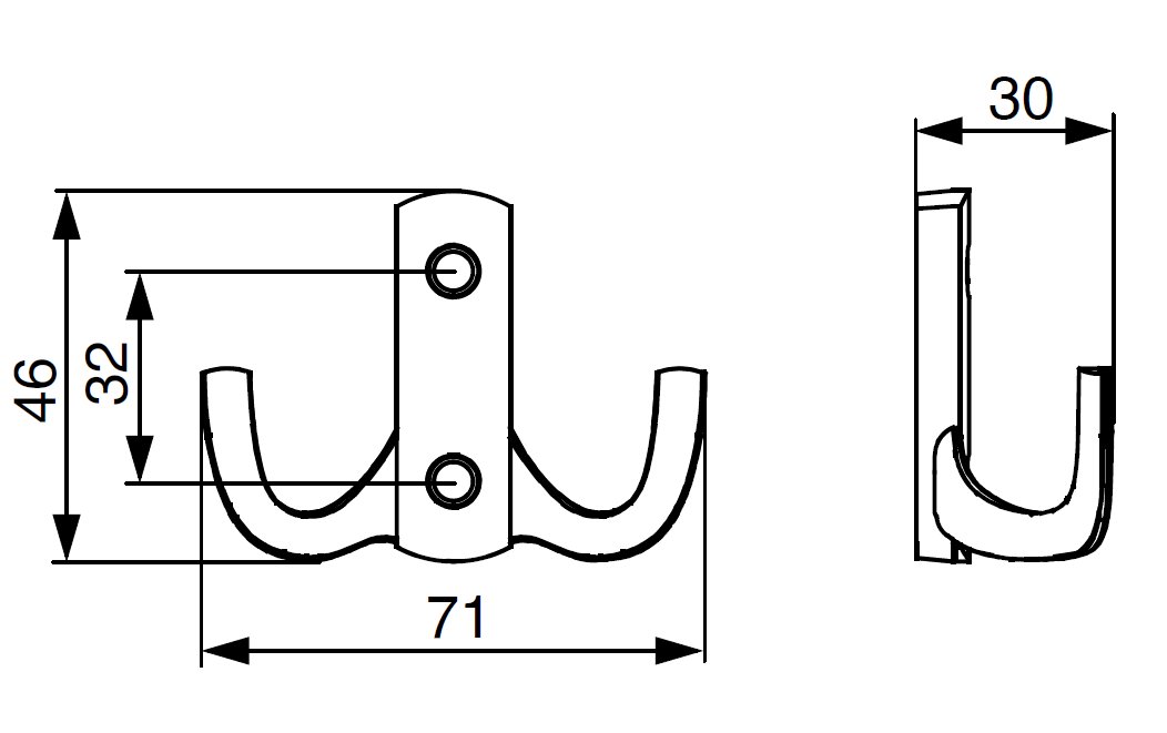 Z přední strany věšáku jsou 2 otvory, kterými přišroubujeme věšák šroubky k vhodnému podkladu (nábytek, dřevo, stěna).