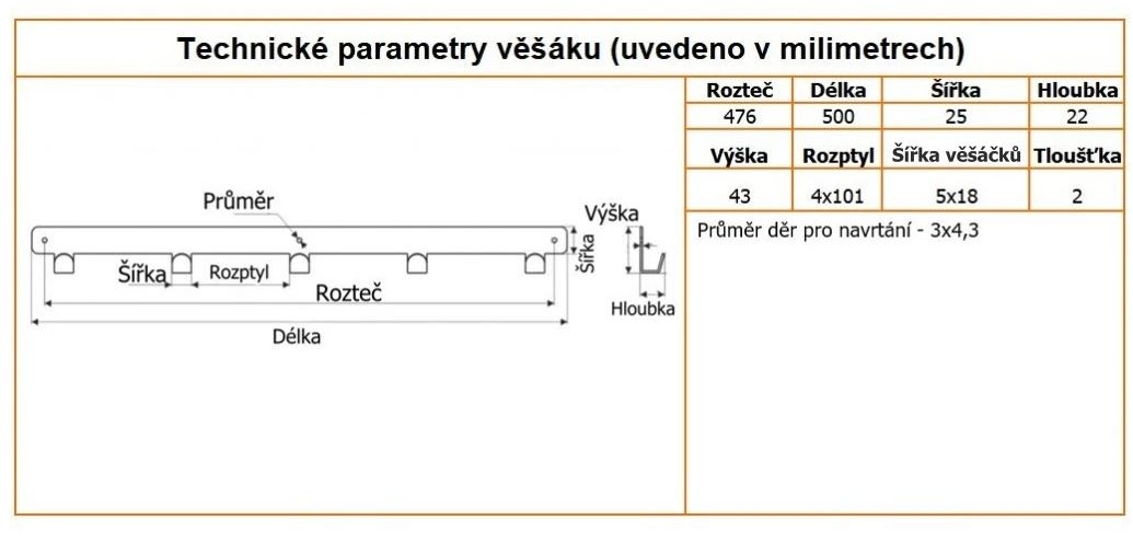 Délka věšáku: 500 mm
