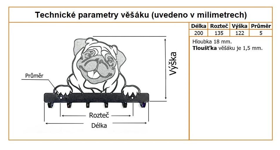 - Věšák Pugy černý