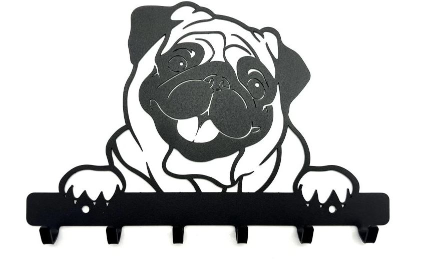 Věšák Pugy s motivem pejska je vyroben z kovu,věšák se dá použít jako věšák na klíče nebo oblečení.