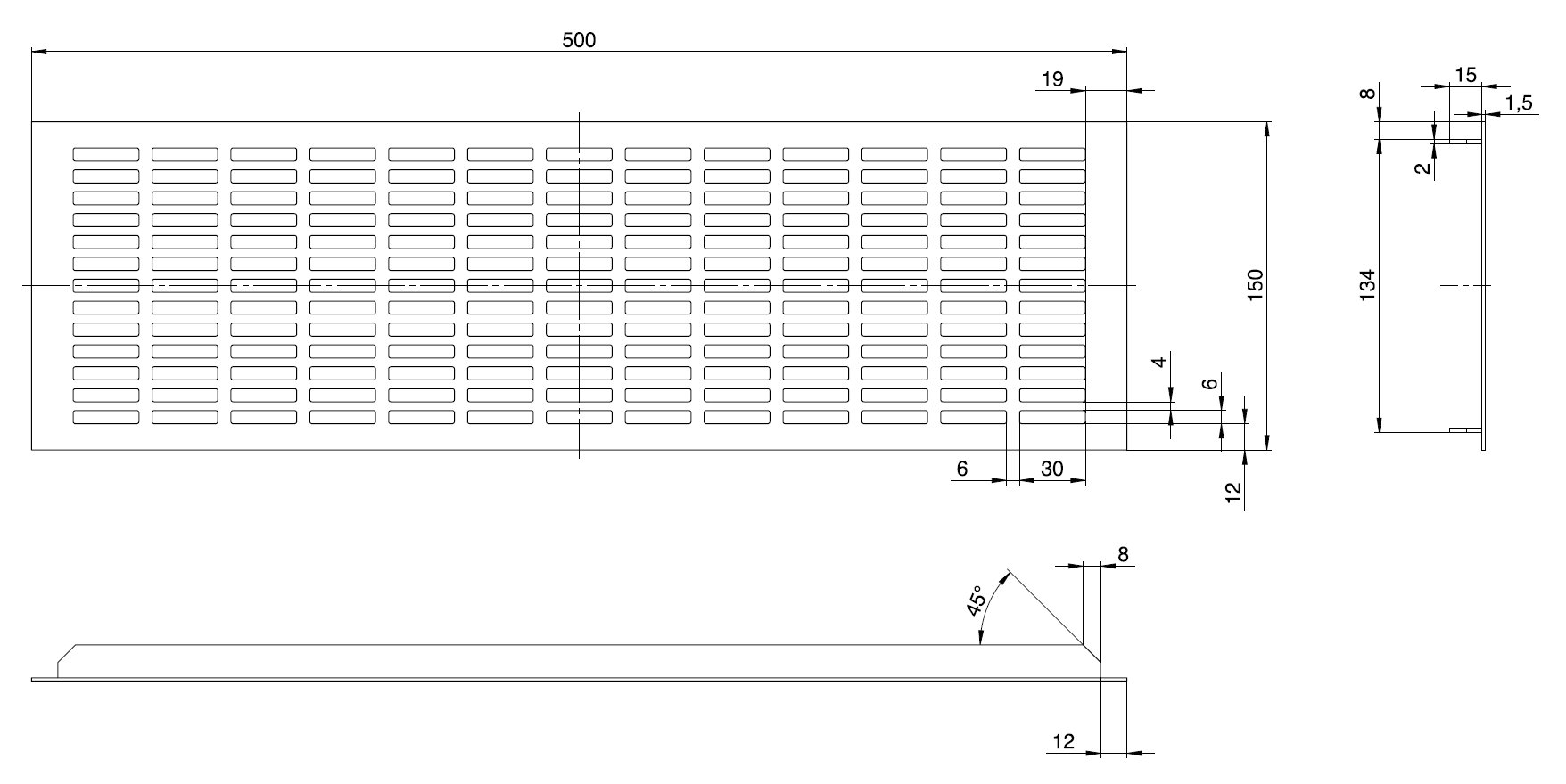 - hliníková větrací mřížka s otvory 40 x7 mm
