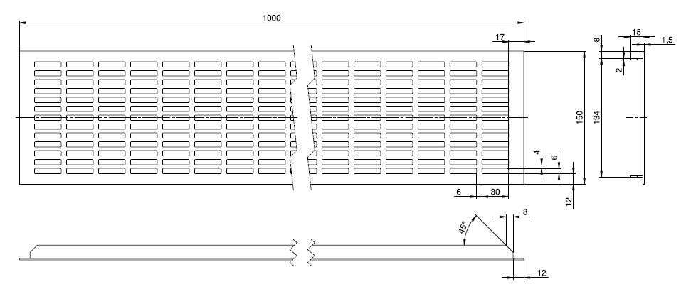 - hliníková větrací mřížka s otvory 40 x7 mm