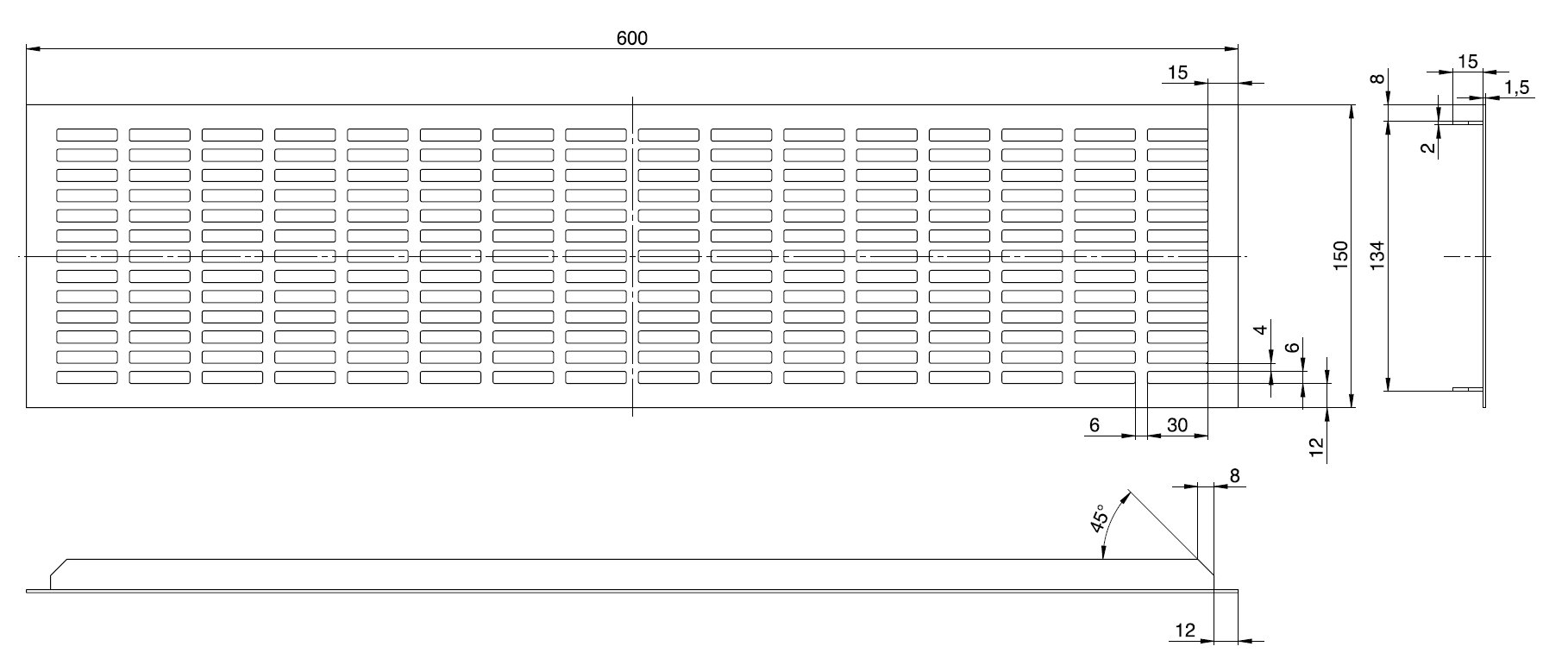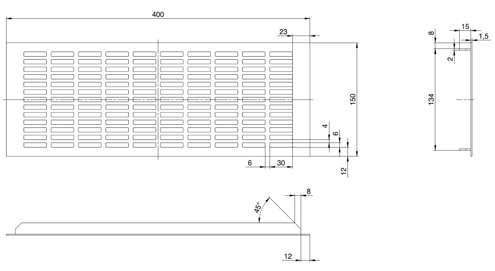 - hliníková větrací mřížka s otvory 40 x7 mm
