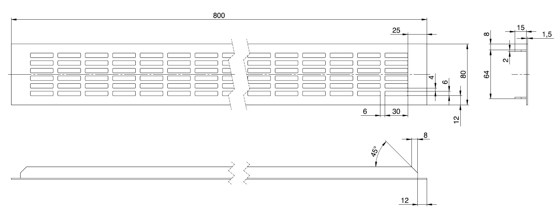 - hliníková větrací mřížka s otvory 40 x7 mm