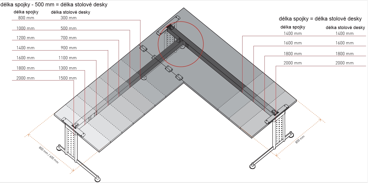 - díky velkému množství doplňků lze sestavovat různé tvary kancelářských stolů, jako například rohové nebo do kříže