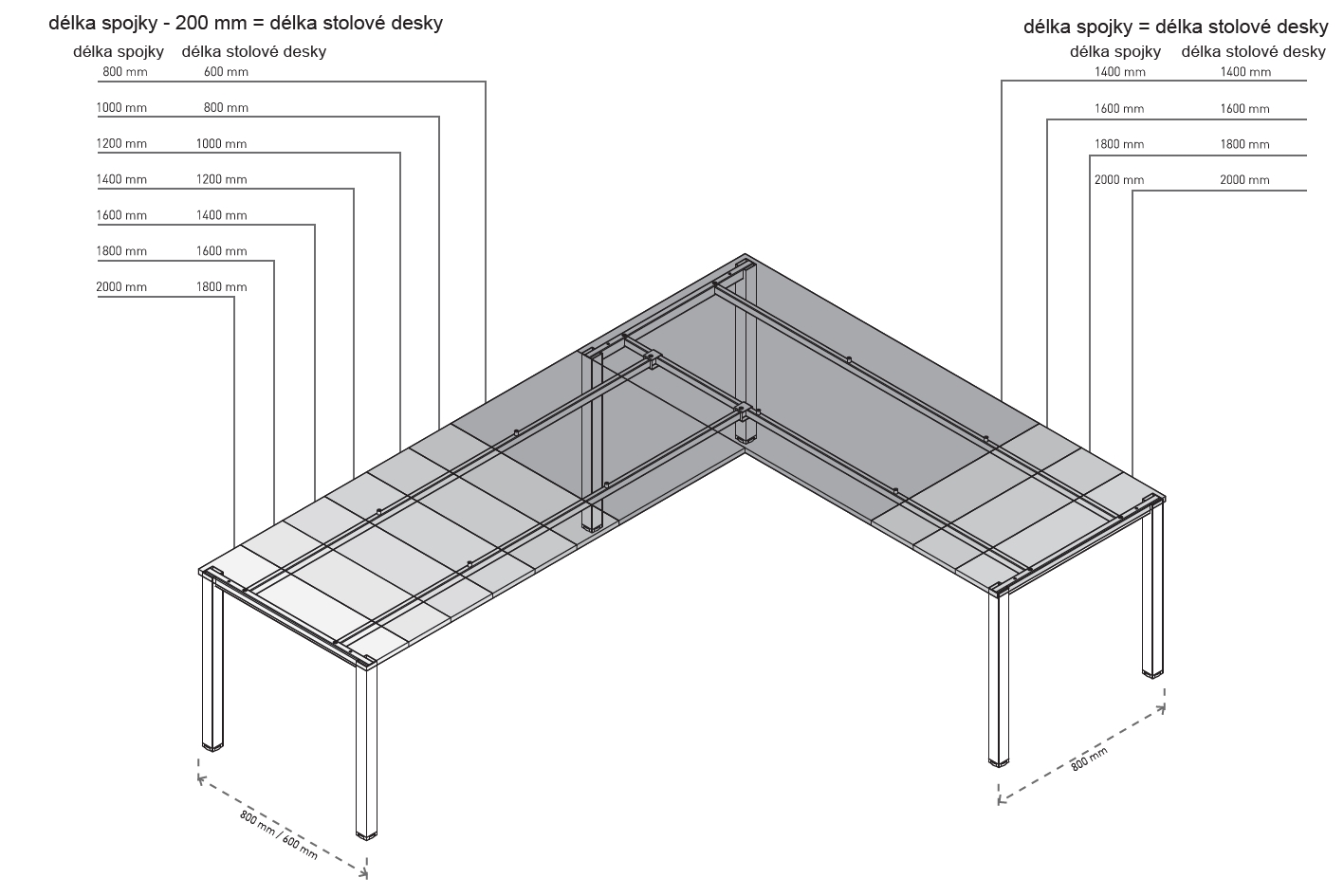 - díky spoustě doplňků lze tvořit různé sety stolů - rohy, kříže nebo spojené stoly za sebou v jedné řadě