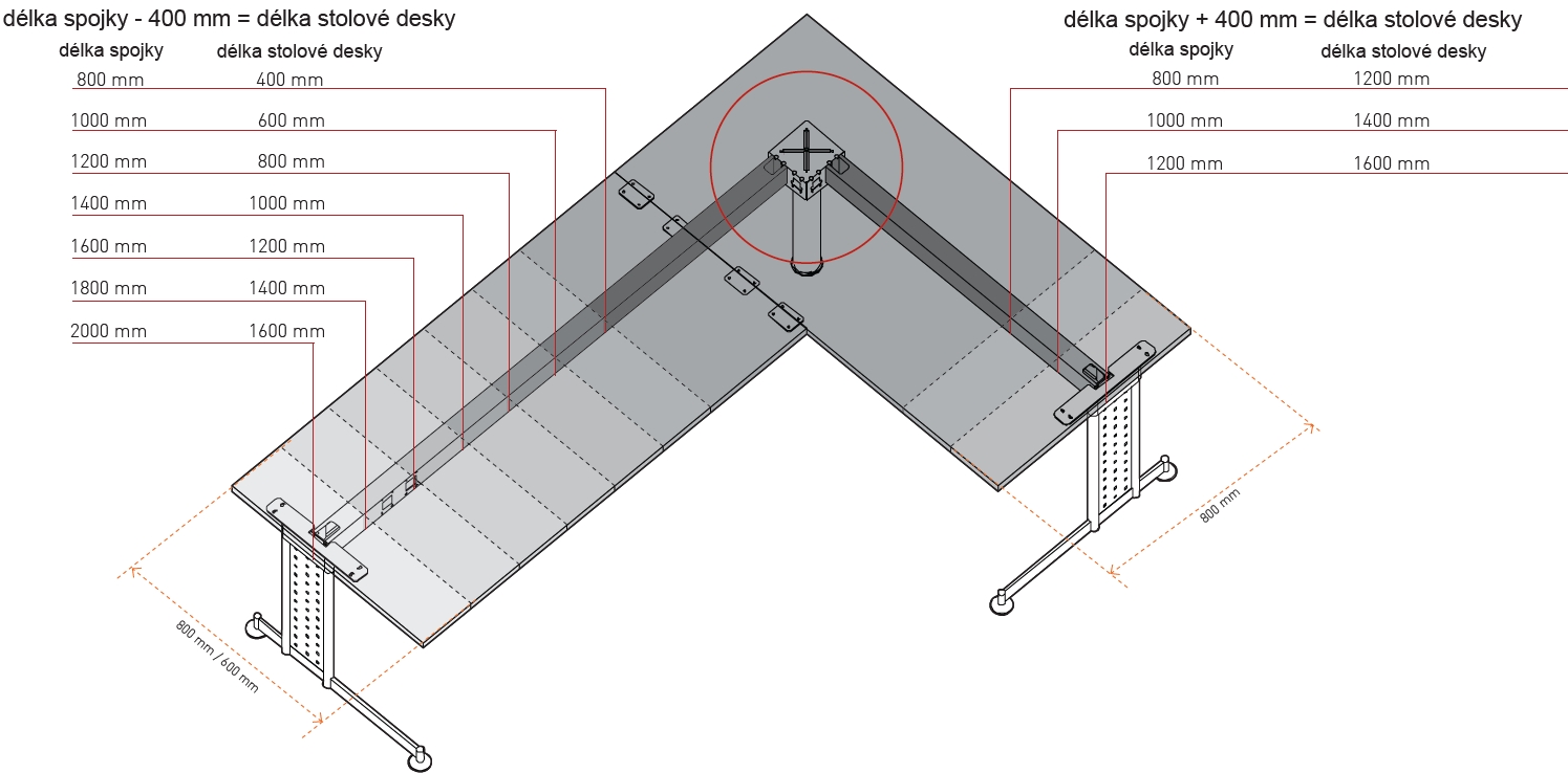 - díky velkému množství doplňků lze sestavovat různé tvary kancelářských stolů, jako například rohové nebo do kříže