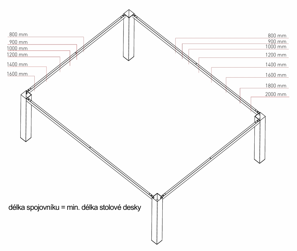 Pro délku stolové desky v mm: 800, 900, 1000, 1200, 1400, 1600, 1800, 2000