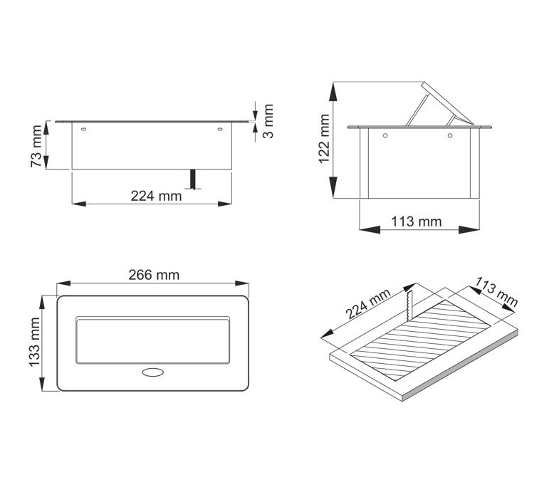 - Venkovní rozměr zásuvky: délka 263 x šířka 118 x hloubka 67 mm